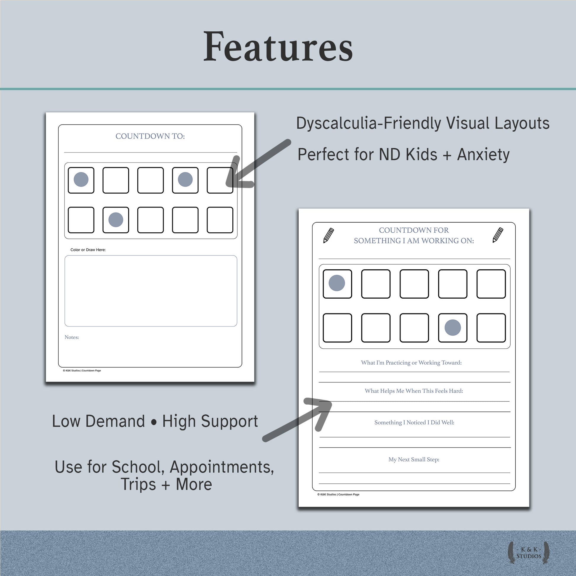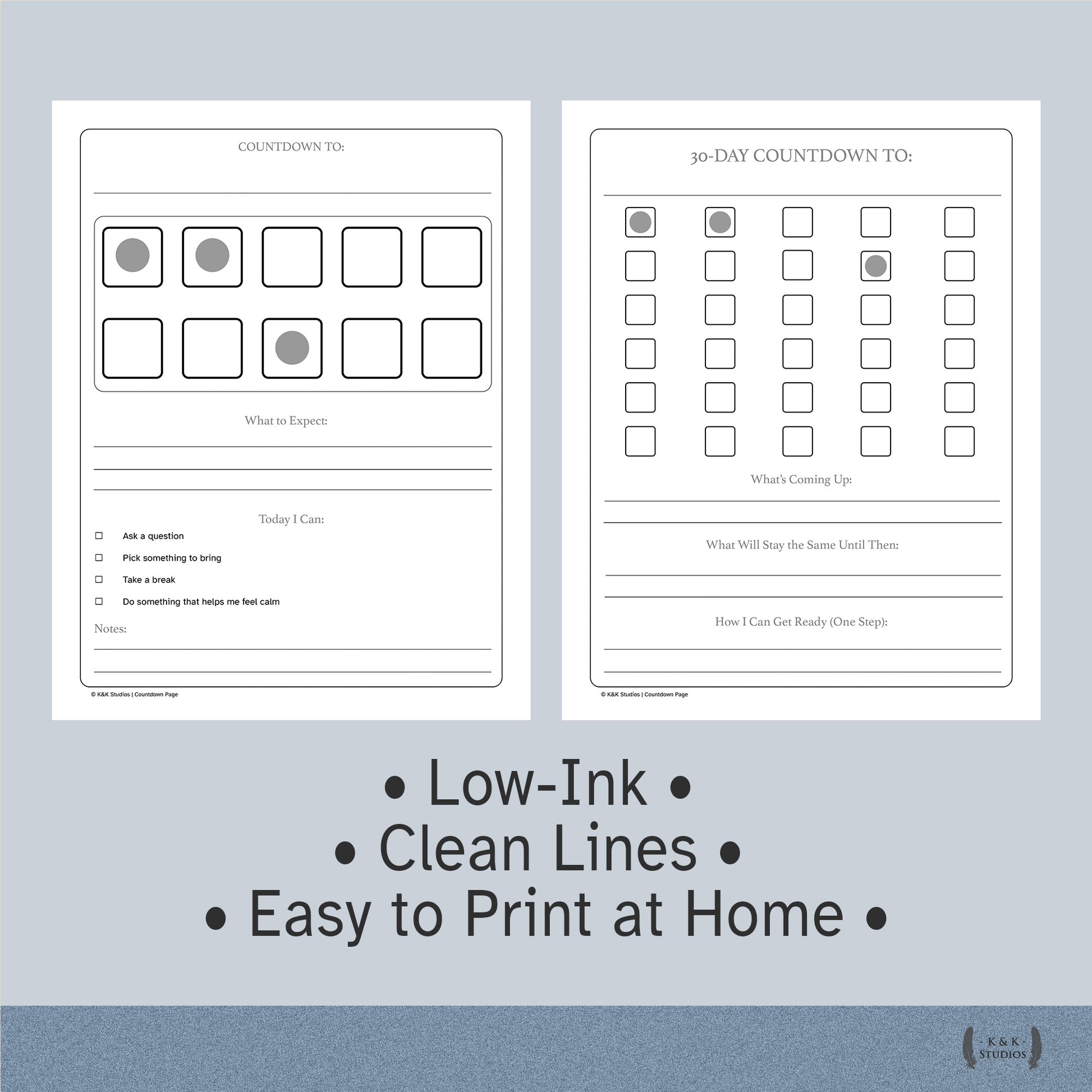 Perfect for transitions, school days, appointments, trips, holidays, and big life moments — these countdown pages reduce overwhelm and bring clarity to routines.