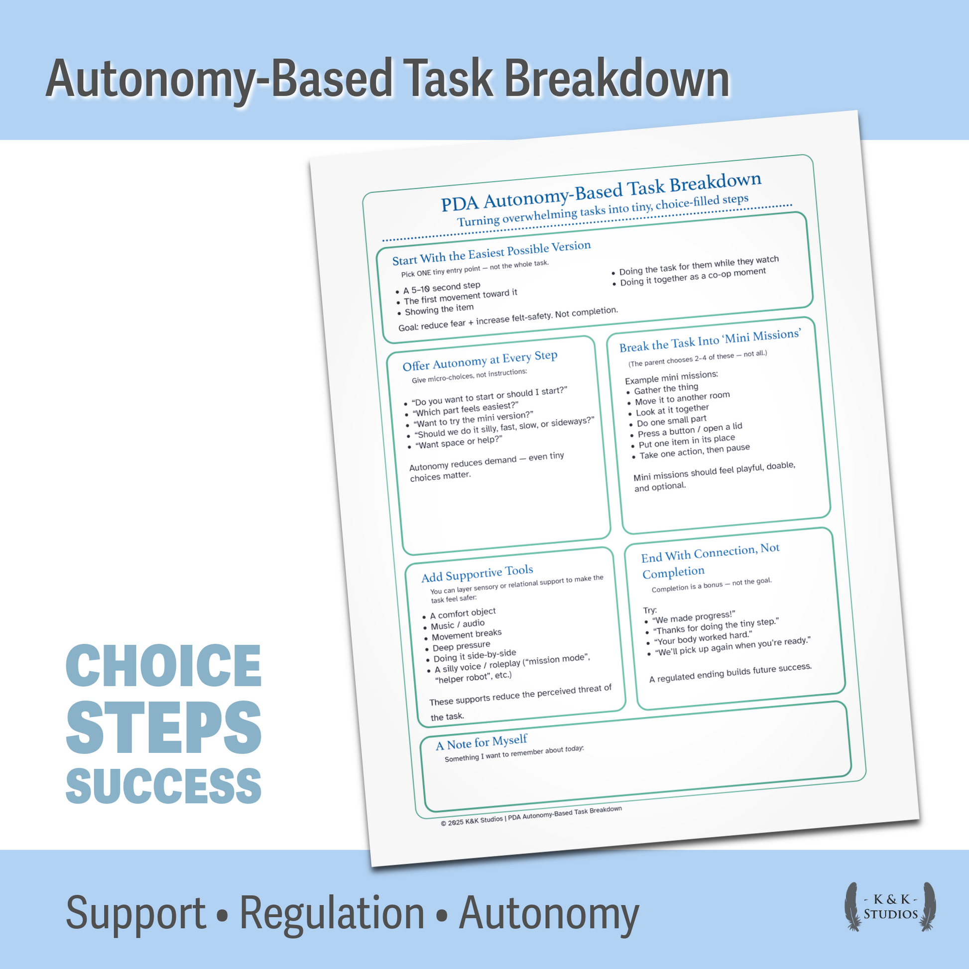 • Autonomy-Based Task Breakdown — flexible, child-led steps that reduce overwhelm and increase cooperation