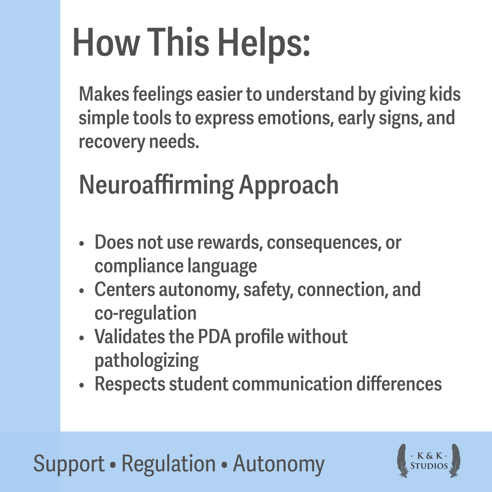 • Designed for PDA profiles & sensory-sensitive learners