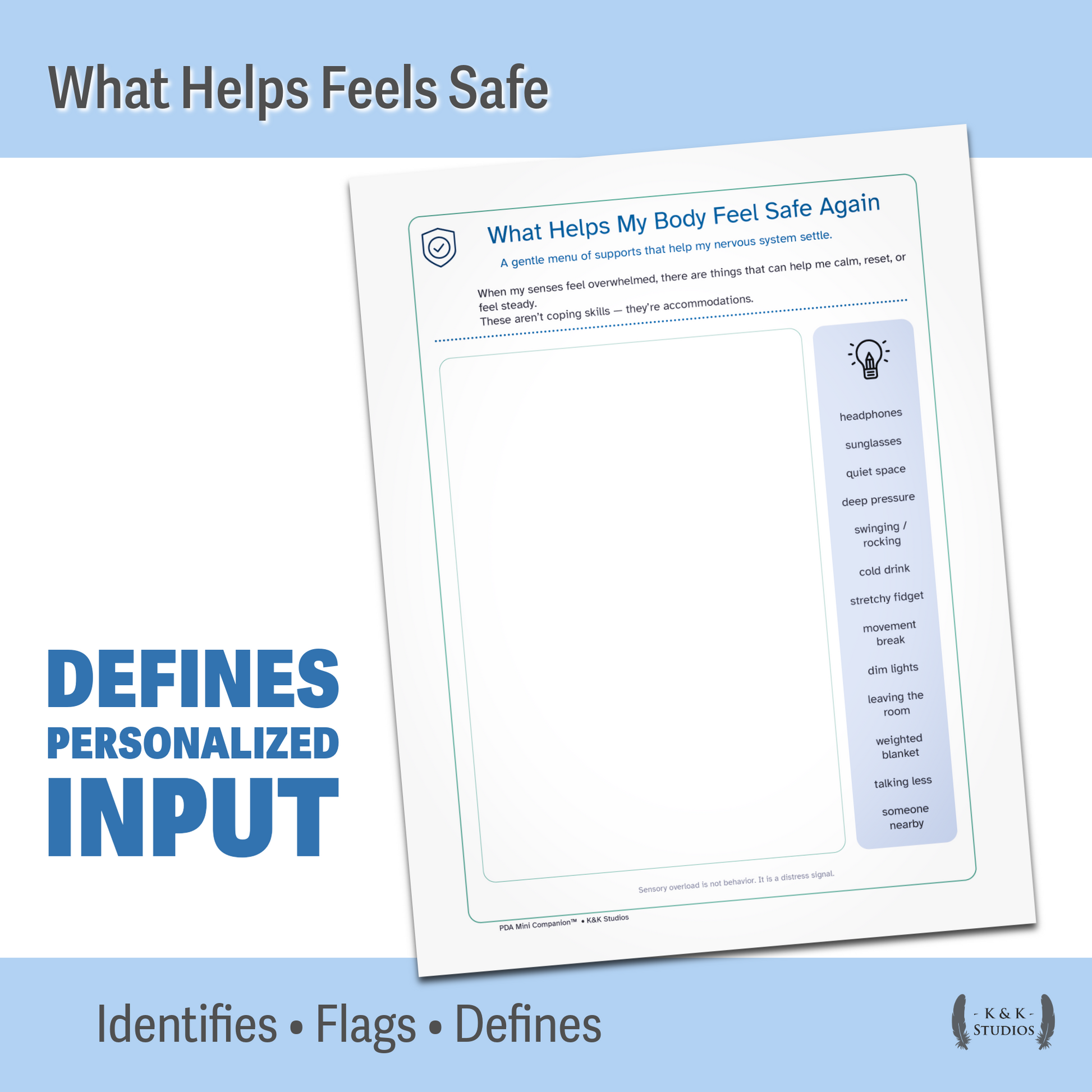 • Helps children communicate sensory needs safely