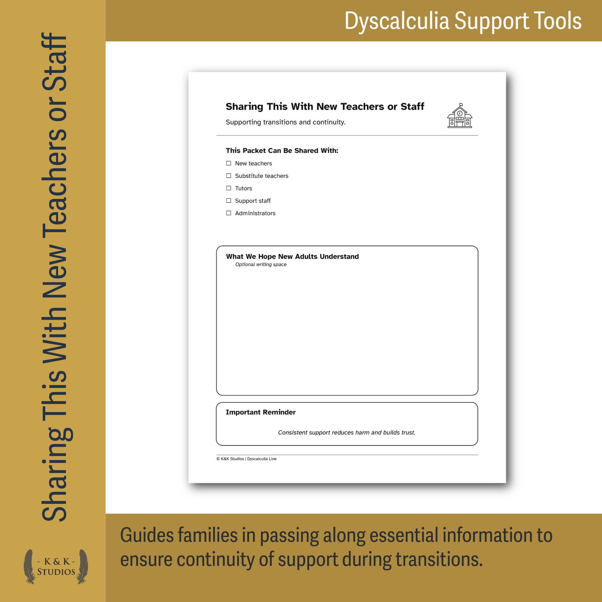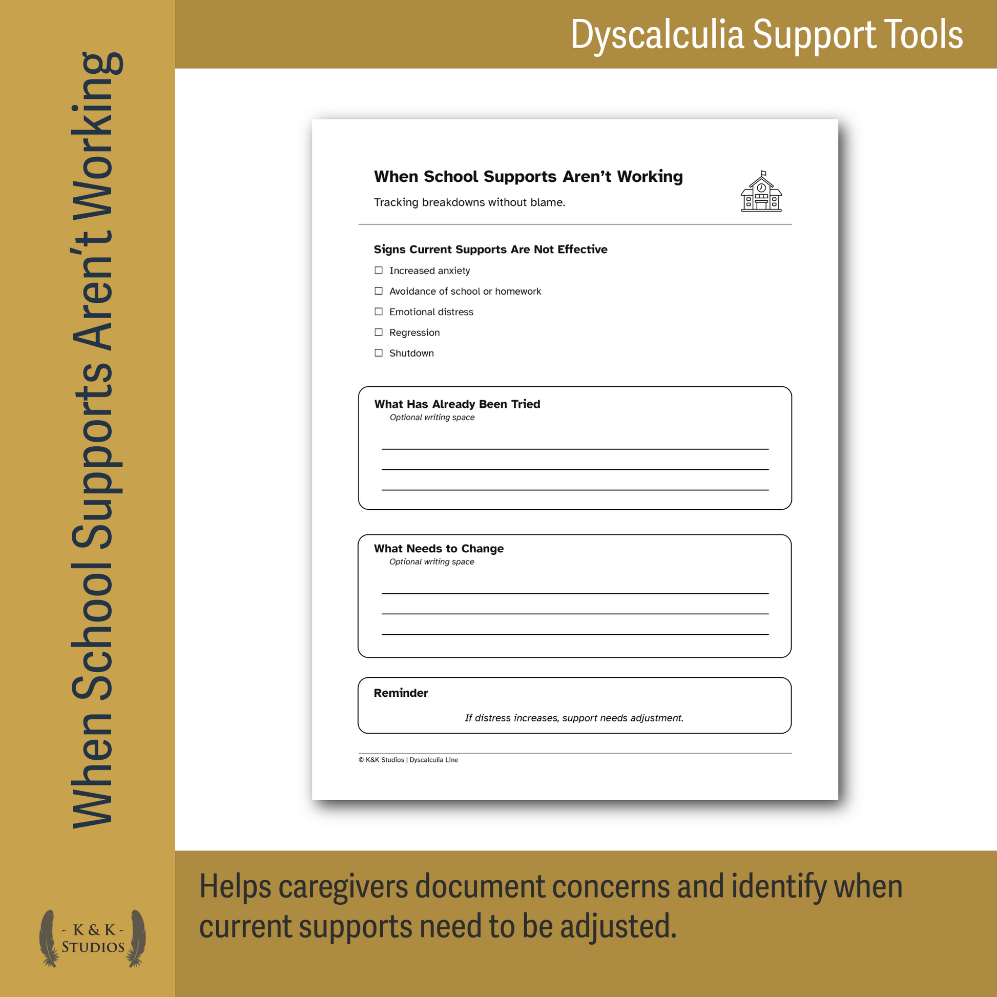 This printable pack was created for families supporting children with dyscalculia who struggle with school expectations, homework demands, and repeated explanations of their needs.